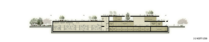 Bu meydanlarla birlikte tüm alanda tariflenen bir diğer ana karar ise; tüm meydanları birbirine bağlayan bir ana omurga tasarımı ile bu omurgayı dikine kesen, arazinin dışındaki park alanı ile kent sahnesini birleştiren bir diğer ulaşım önerisidir. Ana omurga üzerinde; konaklama ünitesi, kapalı spor salonu ve gençlik merkezi farklı kotlardan direk ulaşımla arazi kotlarına yerleştirilmiştir. Bununla birlikte; bölgenin genelinde ağır bir yapılaşma görmek yerine, yeşilin hakim olduğu, insanın ön planda bulunduğu bir sosyal alan tasarımı öngörülmüştür. Yeşil silueti bozmadan yapılar araziye yerleştirilmiş ve teras kullanımları ile maksimum fayda sağlanmıştır.